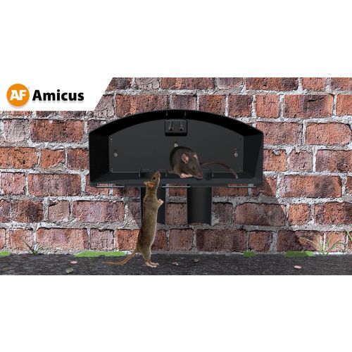 Zastosowane pionowe tuby zachęcają szczury do wspinaczki do środka, chroniąc jednocześnie wyłożony preparat przed niedocelowymi zwierzętami. Łatwy dostęp do środka dzięki zdejmowalnej pokrywie. AF Amicus umożliwia zastosowanie preperatów o różnych formulacjach, jak też w razie potrzeby dwóch pułapek zatrzaskowych.