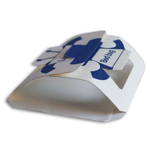 Detektor pluskiew Lureking z Russell IPM to skuteczny produkt do monitorowania pluskwy domowej. Jest prosty do złożenia, a dzięki zawarciu substancji wabiącej w kleju, gotowy do użycia od razu po złożeniu. Niski profil detektora Lureking umożliwia wsunięcie go pod lub za łóżko, za zasłony lub ukryć w ciasnych zakamarkach wokół mebli. Detektory Lureking są bezpiecznym i nietoksycznym sposobem na monitorowanie pluskwy domowej. Ze względu na umieszczenie substancji wabiącej w kleju, produkt jest gotowy do zastosowania, wystarczy złożyć pułapkę. Detektor Lureking, w który złapie się pluskwa, staje się jeszcze bardziej skuteczny, ze względu na feromon agregacyjny wydzielany przez pluskwę. Dodatkowo przyciąga on inne pluskwy.