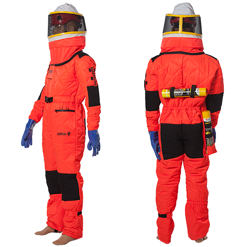 Na lewym ramieniu jest możliwość przymocowania strzykawki z adrenaliną. Kombinezon jest wyposażony w dwa opryskiwacze: