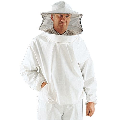 Dzięki wbudowanemu kapeluszowi i dwóm stalowym pierścieniom utrzymuje pszczoły i osy z dala od twarzy. Górna część, chroniąca głowę, jest zapinana na suwak błyskawiczny co umożliwia jej szybki demontaż i np. możliwość prowadzenia samochodu bez zdejmowania kurtki.Wersja DE LUX jest wyposażona w pętle na końcach ręka