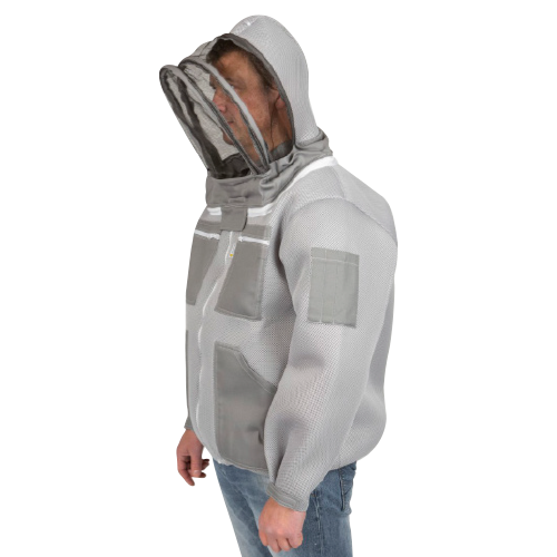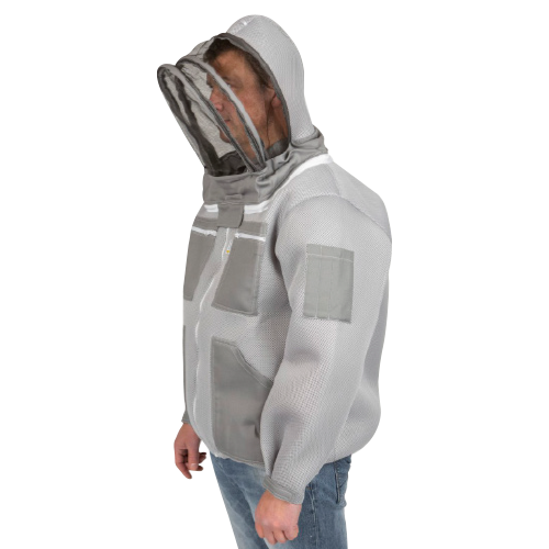 Wysokiej jakości szara kurtka pszczelarska, zapewniająca lepszą ochronę niż klasyczna odzież pszczelarska. Lekka i wygodna w noszeniu, mankiety na rzep, kieszeń na telefon zapinana na zamek błyskawiczny. Trwałe zamki. Można prać w pralce. Rozmiar XXL do 60".