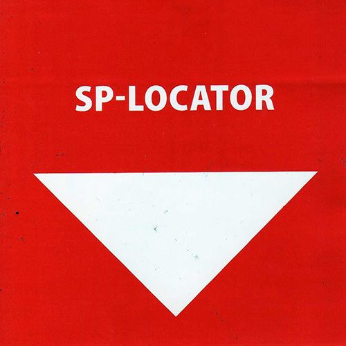 Samoprzylepna naklejka informacyjna na ścianę o treści SP-LOCATOR. Wymiary ok. 10 x 10 cm.