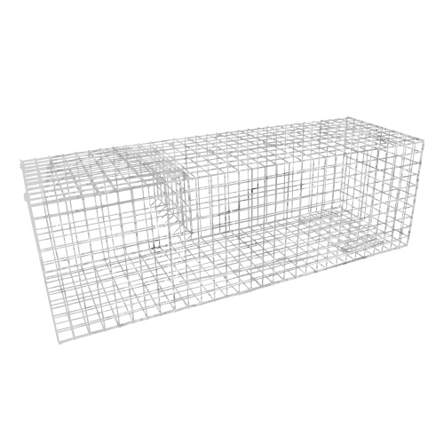 Pułapka wykonana z jednago kawałka siatki wytrzymałej zgrzewanej siatki, bez ostrych krawędzi i dodatkowych zacisków. Wykonana z 25mm x 25mm (1“ x 1“) siatki zgrzewanej 12swg (Ø=2,6mm). Wykończenie z ocynku. Waga 3 kg. Wymiary: 73,7 x 25,4 x 25,4 cm.