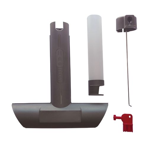Stacja deratyzacyjna wykonana z wytrzymałego tworzywa w kolorze szarym, o kształcie odwróconej litery T. Odstaje tylko 6 cm od ściany. W środku znajduje się pionowy pręt zabezpieczający przynętę w formie kostek woskowych, samoczynnie opadających wraz z ubywaniem preparatu. Dostęp do środka jest zabezpieczony zamkiem na klucz.