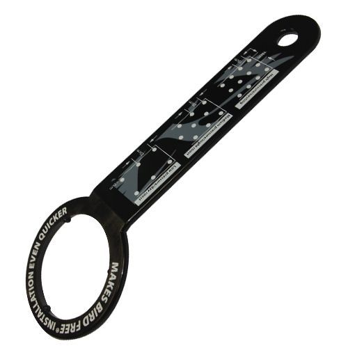Instalacja Bird Free może być teraz jeszcze prostsza dzięki przyrządowi Stiq. Przeznaczony jest on do umieszczania tacek i szybszego zdejmowania z nich pokryw. Długość uchwytu to jednocześnie rekomendowany najmniejszy rozstaw montażu tacek. Na uchwycie znajdują się również inne istotne wskazówki dotyczące montażu Bird Free.