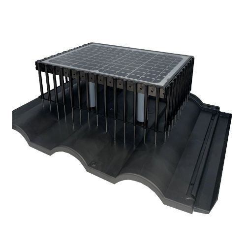 Produkt do zabezpieczenia paneli fotowoltaicznych przed ptakami. Na 50 cm odcinku listwy znajduje się 20 prętów ze stali nierdzewnej 304 grubości 3 mm. Swobodnie opadające szpilki łatwo dopasowują się do każdego profilu dachu. A czarną podstawę